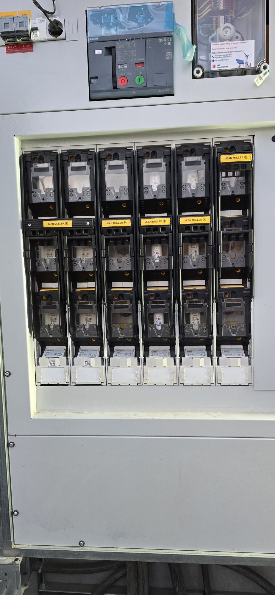 De hoofdvoeding bestaat uit drie parallelkabels van 95 mm², aangesloten op een Jean Müller GmbH Elektrotechnische Fabrik veld, geschikt voor 630A.
